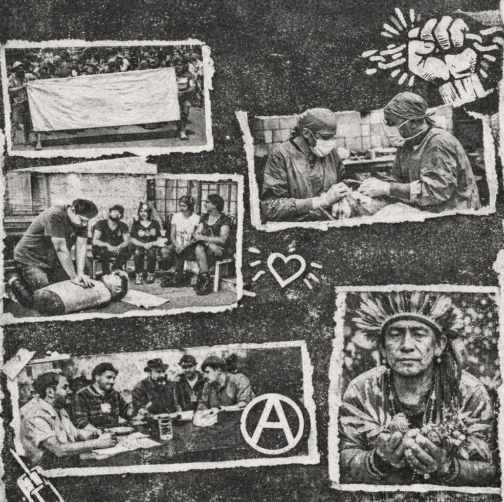 Experiências históricas demonstram a força desse modelo. Durante a Revolução Espanhola, coletivos anarquistas organizaram clínicas autogeridas onde profissionais de saúde trabalhavam junto às comunidades, tomando decisões em assembleia. Na América Latina, povos indígenas mantêm sistemas próprios de cuidado há séculos, combinando ervas, rituais e conhecimento empírico sobre o corpo. Essas práticas resistem apesar da imposição de modelos médicos ocidentais.