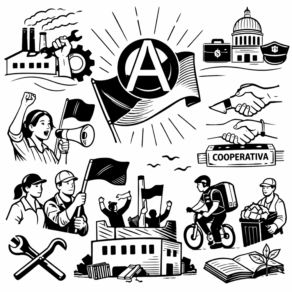 A síntese anarquista articula essas possibilidades sem hierarquizá-las. Numa federação sintetista, podem coexistir grupos atuando em metalúrgicas, organizando entregadores de aplicativo ou estruturando cooperativas de catadores. O que compartilham não é um modelo único, mas princípios e experiências.